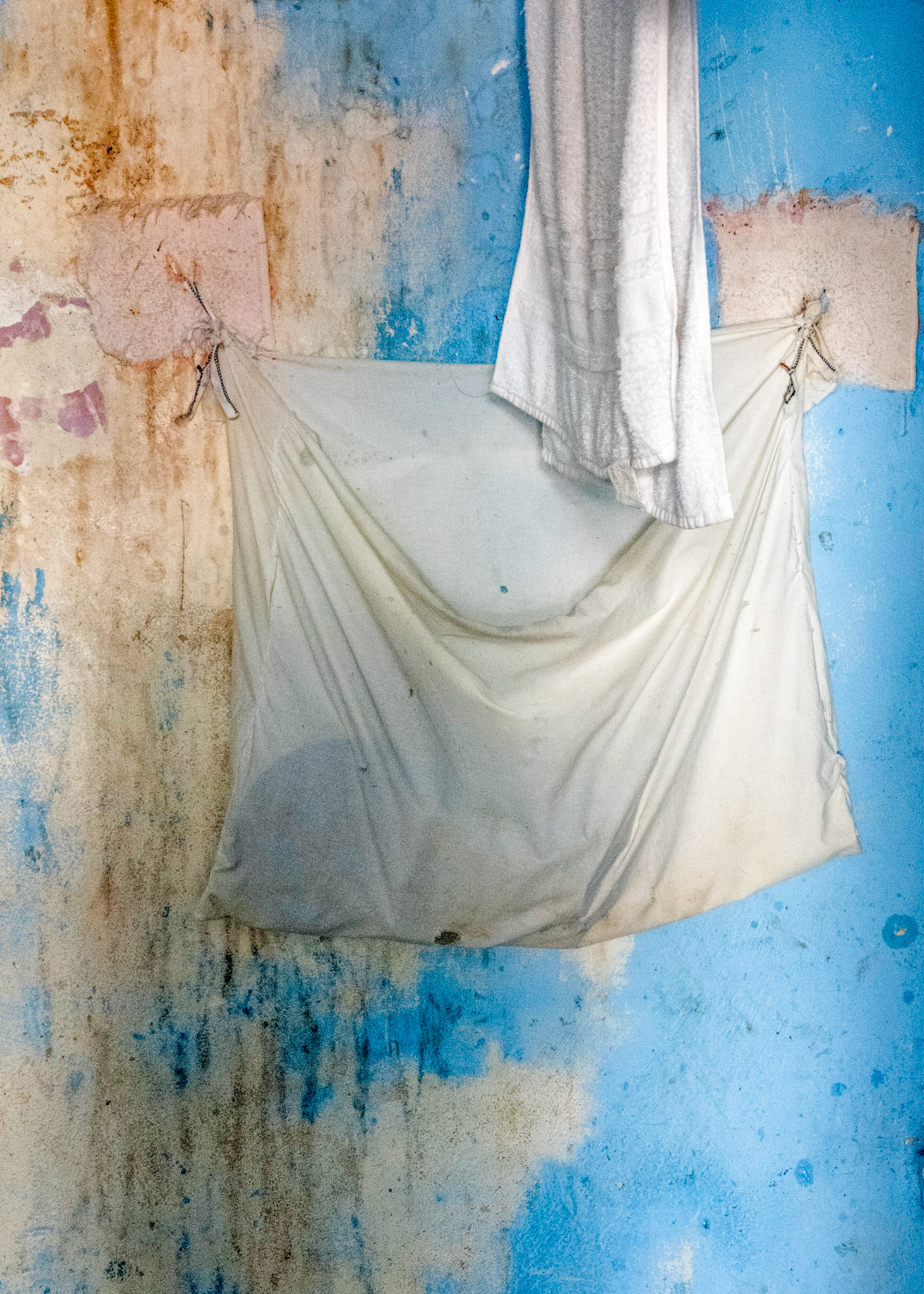 A arte do pouco e do simples, das cores e texturas das paredes. Seus riscos, desenhos e mensagens. A roupa laranja e pendurada. O raio de luz que entra, suave, pela pequena janela e ilumina aquele ambiente de uma dureza própria.